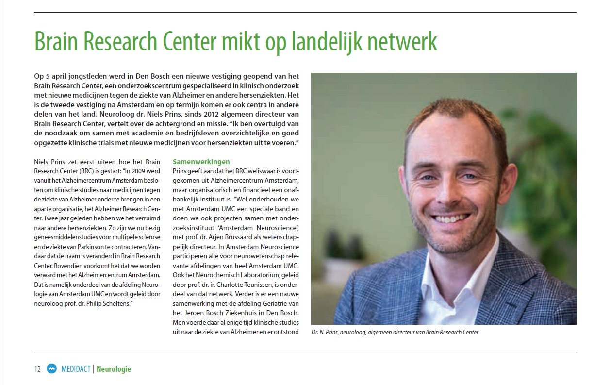 U kunt het gehele artikel lezen op https://medidact.com/neurologie/brain-research-center-mikt-op-landelijk-netwerk/ of in onderstaande afbeeldingen: